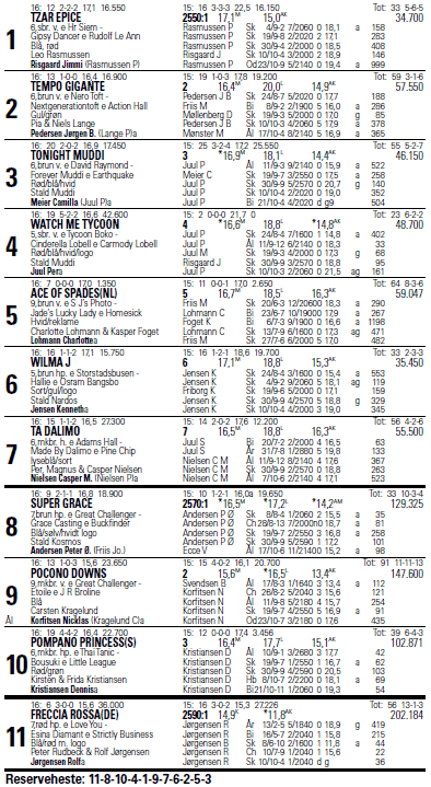 Præmier: 15.000-7.500-3.750-2.250-1.500 (5 præmier) Indskud: 500 kr.