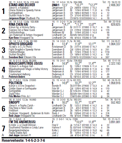 En anden med efternavnet Jørgensen skal også i sulkyen denne eftermiddag. Fornavnet er Birger, og han får igen chancen bag Stand And Deliver. Parret stiller til start i et Liga 1-løb, og modsat de seneste starter har parret trukket et godt spor.